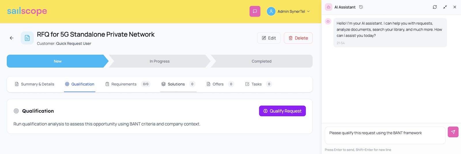 Although it’s not a necessary step - Sailscope allows to perform request qualification.