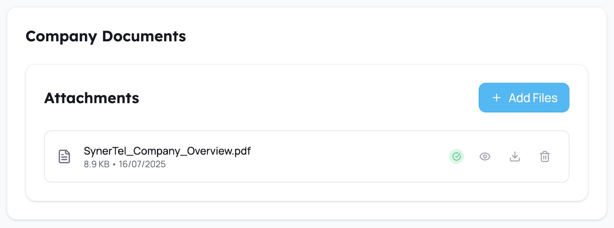 If you have any PDF, DOCX, PPTX files that provide additional context - make sure to upload them in the attachments section. Attachments are available both under the company as well as under individual products.
